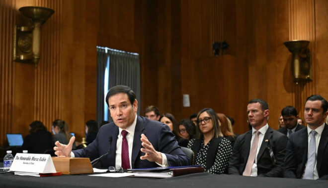 Mientras los republicanos y demócratas del comité expresaban lecturas marcadamente diferentes sobre la política exterior del gobierno, Rubio abordó las intenciones de Trump y su retórica a menudo belicosa que ha alarmado a los aliados de Estados Unidos en Europa y otros lugares, incluidas las exigencias para tomar el control de Groenlandia.