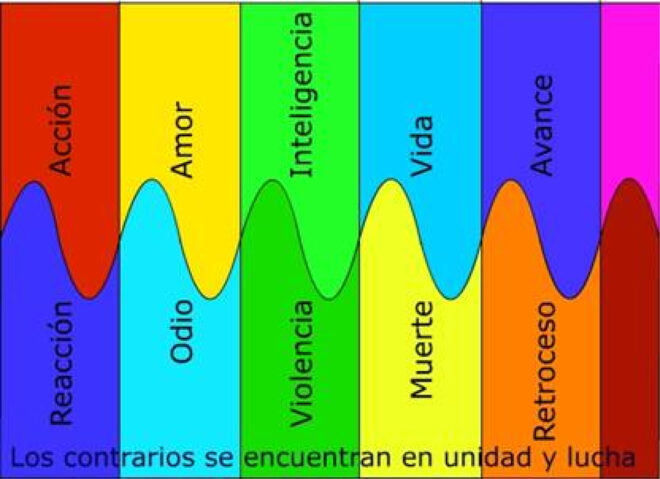 Todo tiene su contrario. La contradicción es el dinamo del movimiento. Todo se mueve y fluye, dando lugar a cambios y situaciones nuevas y distintas, aunque con los mismos actores u otros.